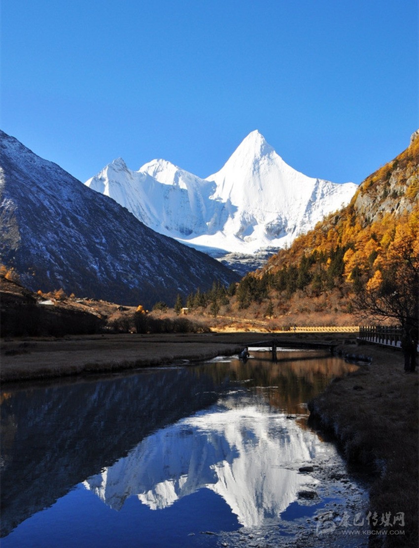 央邁勇,意為“文殊普薩”,海拔5958米,是“三怙主神山”的南峰;狀若一位斜倚在大榻上笑對(duì)世界的閑靜處子;在佛教中是智慧的化身。1928年,當(dāng)美國探險(xiǎn)家約瑟夫·洛克先生在云南與稻城毗鄰的崇山峻嶺中遙望央邁勇時(shí),一種被它圣潔、高貴的氣質(zhì)所折服的情感也隨之降臨了;他在日記中由衷感嘆,“央邁勇是我見到的世界上最美的山峰”。