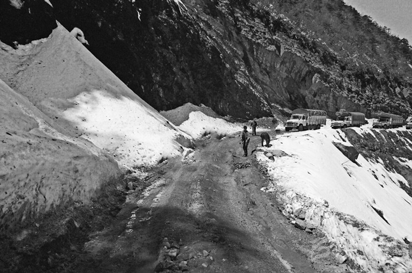 川藏公路翻越了整個橫斷山脈,穿過了14座高山,二郎山就是橫亙在川藏線上的第一座高山,是通往藏區(qū)的咽喉險關(guān),被稱為“天塹”,素有“千里川藏線,天塹二郎山”之說。夏天,滑坡,塌方,泥石流,飛石;冬季,冰雪路,桐油路,雪封山。每年總有好幾起車禍?zhǔn)鹿省?傊境巳藛T一提起二郎山,大有談虎色變,汗毛倒豎之感。冬季,為了保障行車安全,交警部門不但實行交通管制,還派專人在桐油路段撒鹽防止車輛打滑。