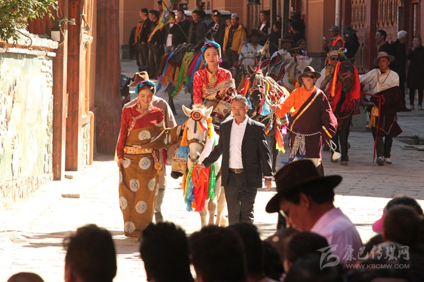 拍攝組所到之處,當?shù)攸h委和政府給予了高度重視與鼎力支持。雅江縣和理塘縣安排縣委宣傳部部負責相關事宜,指定專人對接,協(xié)調(diào)解決拍攝過程中的問題;巴塘縣安排分管領導召集相關部門,召開協(xié)調(diào)會議,組織各涉及單位做好配合工作,最大限度地為攝制組排憂解難,創(chuàng)造條件。為了配合劇組拍攝,在很短的時間內(nèi),組織由學生、退休干部和群眾組成的千人弦子表演。五彩田園景觀棧道上,胡琴聲輕輕回蕩,玫瑰紅彩袖飄揚,上演了一場美輪美奐的視覺盛宴,成為該片展現(xiàn)高原江南鵬城巴塘濃墨重彩不可多得的鏡象。巴塘老街上,剽悍粗獷的漢子們穿著盛裝騎馬而過,四十余匹駿馬頭戴紅纓,頸系銅鈴,身佩五色鞍子,神彩奕奕;女一號穿戴巴塘婦女服飾上演了一場盛大的婚禮場景,還原巴塘古老的婚俗文化,為電影錦上添花。