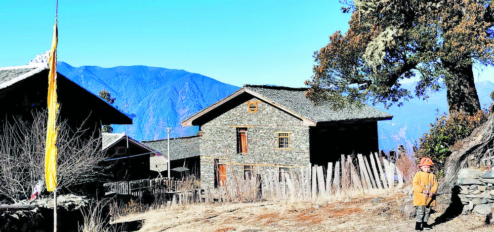 洛克所經(jīng)過(guò)的地方就是三巖龍鄉(xiāng)的猛董,這是一處鮮為人知的隱世天堂。猛董有“五絕”,即“山、湖、谷、寨、寺”,山是被當(dāng)?shù)厝诵欧顬樯裆降柠湹刎暩拢湹?,藏語(yǔ)為珍珠),湖是神山腳下的麥地措(珍珠湖),谷是雅礱江谷地的藍(lán)月山谷,寨是猛董“后花園”的普米寨子,寺是修建于明清時(shí)期的猛董古寺。