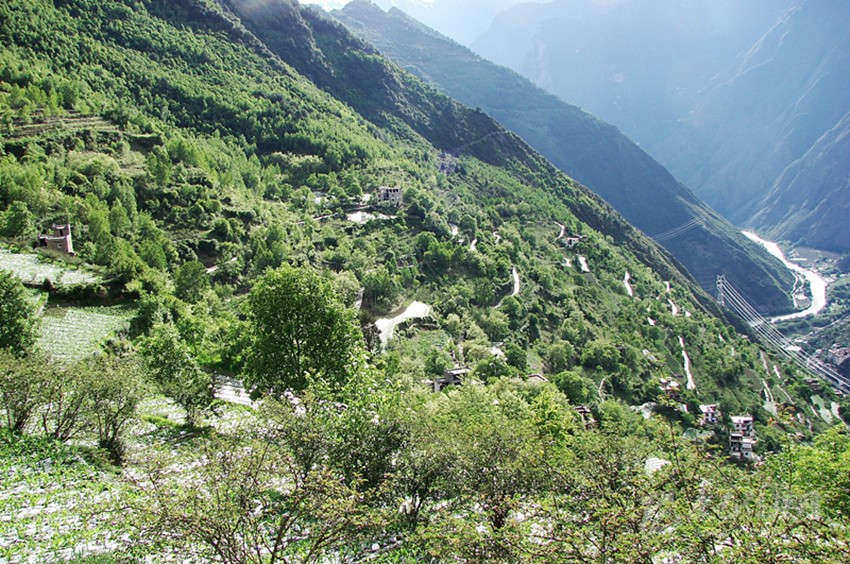 老家的中學(xué)地處峽谷之中,一條小溪從學(xué)校后面的峽谷中奔涌而出。由于這條溝谷里又有九條山脊,因此又稱(chēng)為九道溝。各條小山谷里的溪流匯合之后,竟然形成了與河流大小相近的水流。當(dāng)流經(jīng)中學(xué)旁時(shí),狹窄的溝谷使得溪流狂躁起來(lái),撞擊著兩岸的山崖,翻卷著浪花,發(fā)出震耳欲聾的聲響。最后匯入小金川河之中,向著遠(yuǎn)處的大渡河奔去。