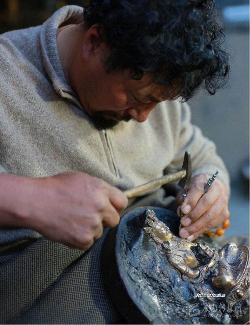 達(dá)瓦扎巴年輕、穩(wěn)重、活力,儼然一副小主人的模樣,用流利的漢語(yǔ)給我們介紹銅鑄技術(shù),也充當(dāng)我們和父親之間的翻譯。我們問(wèn)達(dá)瓦扎巴麥宿銅鑄佛像與其他地區(qū)的最大差別在哪里,他滿是自豪回答:我們的鎏金銅技術(shù),可以說(shuō)是獨(dú)家絕活,也是內(nèi)地近乎失傳的古法工藝。有故事為證:二十多年前,因?yàn)橹挥懈赣H一人會(huì)這門(mén)技術(shù),佛像產(chǎn)量很小。一位常年在印度做古董佛像投資生意的麥宿人回到老家,發(fā)現(xiàn)自己輾轉(zhuǎn)收來(lái)的“古董”竟然出自夏雷尼瑪之手。原來(lái)因?yàn)楣に嚬艠憔?,夏雷尼瑪制作的佛像被許多人冒充“古董”轉(zhuǎn)賣(mài),竟然流到了印度。