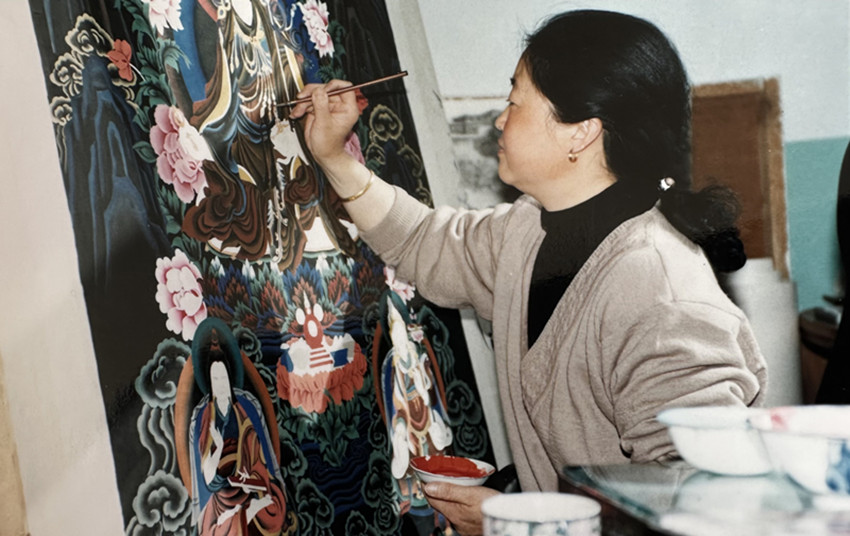 翔秋志瑪(又名王芳馨),這位在新中國(guó)成立后,成長(zhǎng)起來(lái)的畫家,打破了女性不能畫唐卡的舊規(guī),將古老的藝術(shù)與藏民族現(xiàn)代的生活相結(jié)合,開創(chuàng)了我州藏畫的新局面。