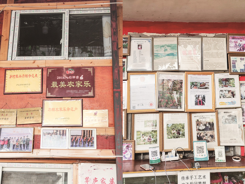 她說:“一開始,我的目的就是想掙錢,想要這個家庭擺脫貧困。在開辦這個農(nóng)莊之前,我家一直就在借債還債的循環(huán)中苦苦掙扎。天有不測風(fēng)云,2006年丈夫華建做心臟手術(shù),2007年又做膽息肉手術(shù),花光了四處借來的四萬多塊錢,丈夫出院回家后,不能外出打工,又要急著還人家的錢,在無計可施的時候,我們想到了搞養(yǎng)殖,養(yǎng)魚魚死光了,養(yǎng)雞倒是成功了,但是賣不出去,基本虧了個底朝天。我只好四處打工,但是基本上都處于入不敷出的尷尬境地?!?013年長子華啟明住院做脾裂手術(shù),2015年公公腦梗,又去州醫(yī)院手術(shù),好像前半輩子就是借錢、還錢,拆東墻補(bǔ)西墻,無可奈何。正當(dāng)經(jīng)濟(jì)上緊張得不可開交,覺得山窮水盡時,國家出臺了鄉(xiāng)村振興戰(zhàn)略,她響應(yīng)國家號召,想到了回到家鄉(xiāng)開辦農(nóng)家樂。第一年,在“婦女創(chuàng)業(yè)”貸款8萬元、信用社貸款16萬元,把農(nóng)家樂勉強(qiáng)辦起來了。在幾年的經(jīng)營中,“茅廬農(nóng)莊”的口碑越來越好,在2016年被杵坭鄉(xiāng)授予“2016大眾評選最美農(nóng)家樂”,在2018年人氣美食商家網(wǎng)評選為“瀘定縣網(wǎng)友喜愛美食商家評選季軍”,2019年人氣生態(tài)評選網(wǎng)評選為“瀘定縣網(wǎng)友喜愛生態(tài)休閑農(nóng)莊評選季軍”?,F(xiàn)在,農(nóng)莊的生意越來越好,規(guī)模越來越大,家里的日子越來越好,一家人也過上了幸福的生活。