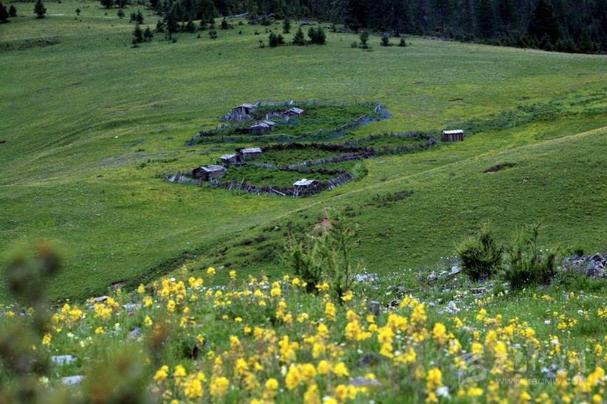 在雅江縣城西邊約60公里處,有一處山水秀麗的地方,由于遠(yuǎn)離公路,這地方一直“養(yǎng)在深閨人未識”。自然風(fēng)光格外秀麗姑且不說,只說那處地名為“郭崗頂”的、地形如“蓮花寶座”的山谷草壩上,緊靠一塊圓圓的叫做“太陽”、另一塊彎彎的叫做“月亮湖”的兩個湖泊旁,有一處龐大的古建筑群遺址赫然入目,讓人驚嘆不已。不遠(yuǎn)處,一座已有600多年歷史的“郭沙寺”,也好像是在守望著不遠(yuǎn)處這群讓人遺忘的古舊破敗的建筑。