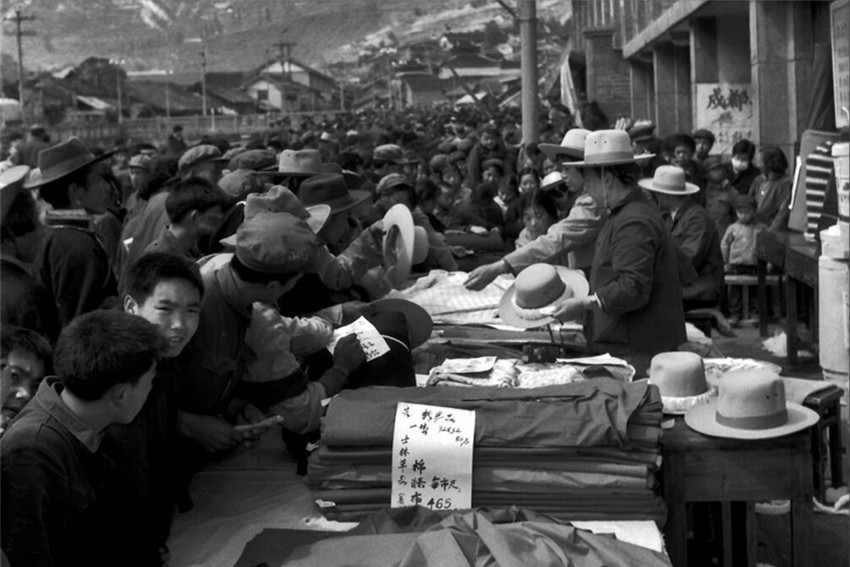 “四月八”期間,康定百貨公司的貨物擺上了街頭。 龔伯勛 1980年拍攝