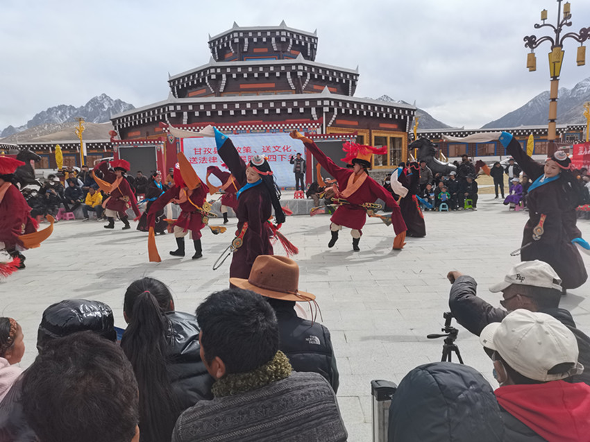這邊搭起咨詢臺為群眾送衛(wèi)生、送科技、送法治,那邊搭起舞臺為群眾奉上了一場精彩的文藝表演。本土山歌《甘孜山歌》、獨(dú)唱原創(chuàng)歌曲、舞蹈《甘孜踢踏》《嶺·卓》等群眾喜聞樂見的節(jié)目輪番登場,贏得陣陣掌聲。