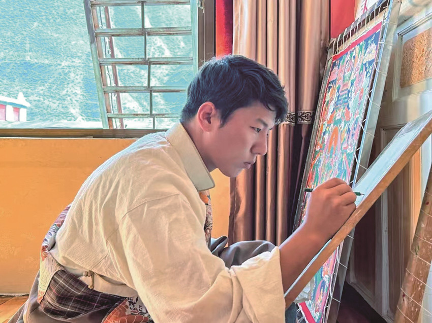 難以想象,眼前這名陽(yáng)光帥氣的95后藏族大男孩已是從事唐卡繪畫(huà)18年的“老畫(huà)師”。