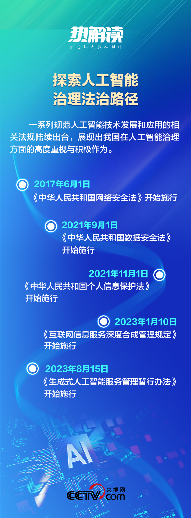 2023年10月,第三屆“一帶一路”國際合作高峰論壇開幕,習(xí)主席宣布中方提出《全球人工智能治理倡議》。這一倡議堅持“以人為本、智能向善”,為世界提供了基于人類命運共同體理念的人工智能治理新視角。