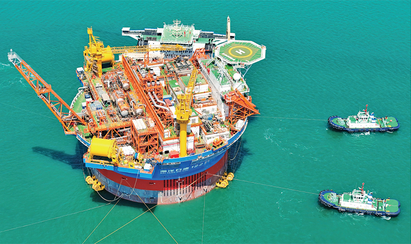 “??惶?hào)”,是亞洲首艘圓筒型浮式生產(chǎn)儲(chǔ)卸油裝置。該裝置集原油生產(chǎn)、存儲(chǔ)、外輸?shù)裙δ苡谝惑w,被網(wǎng)友們昵稱為“超級(jí)能源碗”,也是完全由我國(guó)自主設(shè)計(jì)建造的海上油氣加工廠。圖為2024年5月12日,“??惶?hào)”從中國(guó)海油青島國(guó)際化高端裝備制造基地離港啟運(yùn)。 人民圖片 張進(jìn)剛/攝
