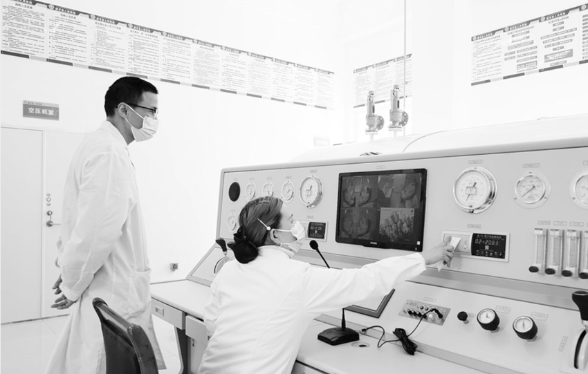 占地180余平方米的高壓氧治療中心,可容納6名患者同時(shí)治療。高壓艙內(nèi),患者可以自在地坐著“吸氧”,還可以聽聽音樂、聊聊天。艙內(nèi)配備空調(diào)、監(jiān)控及對(duì)講裝置,醫(yī)護(hù)人員在安全操控設(shè)備的同時(shí)全程密切關(guān)注艙內(nèi)情況,以防意外情況的發(fā)生。