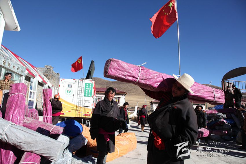 塔公鄉(xiāng)塔公村黨員服務(wù)隊(duì)在支書張東升的帶領(lǐng)下為災(zāi)民搭建帳篷。
