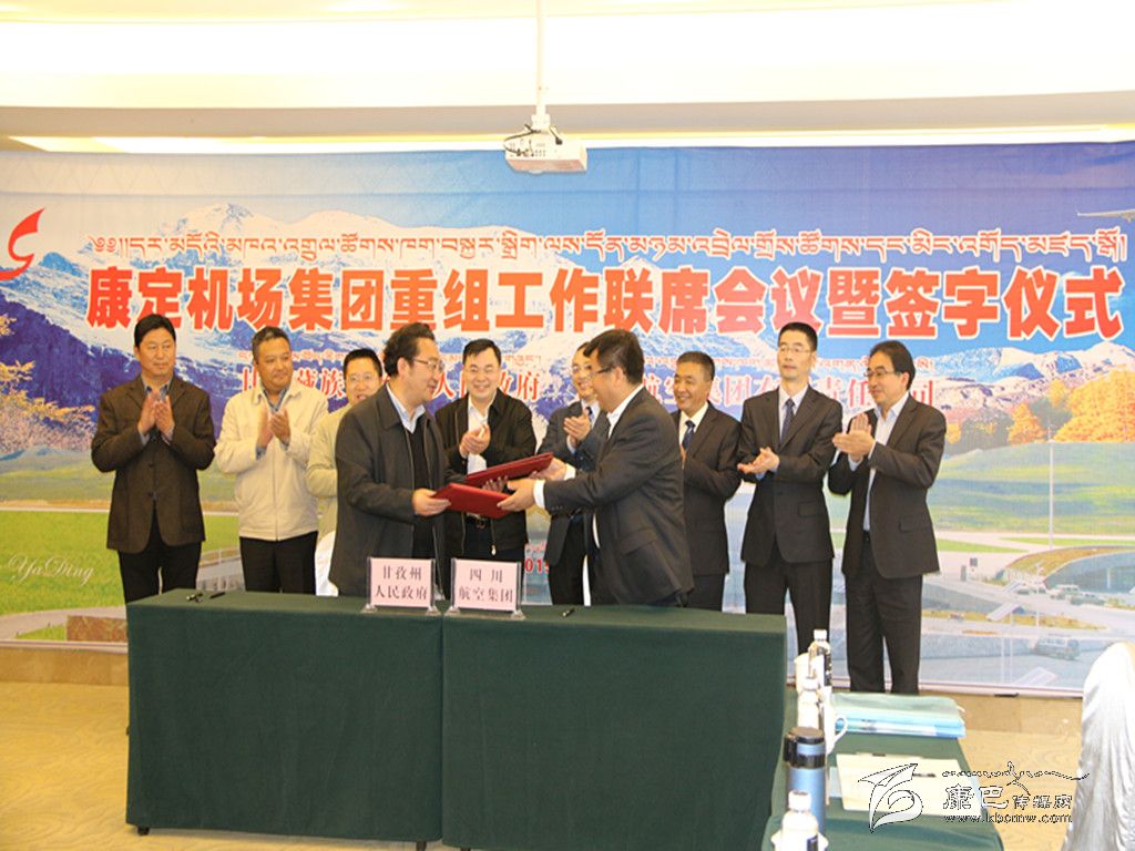 會上,胡昌升和李海鷹分別作了講話,益西達瓦和李海鷹分別代表州人民政府和川航集團簽署了四川康定機場集團公司重組事宜備忘錄。李海鷹在講話中表示,川航集團和甘孜州的發(fā)展方向一致,價值取向一致,雙方一定會在加強合作的基礎(chǔ)上實現(xiàn)共同發(fā)展;川航將盡快開通西安、重慶、昆明、杭州至甘孜州的航線,開通康定至稻城的“高高原”互飛航班;充分利用川航集團的宣傳平臺,推廣甘孜州旅游、文化等優(yōu)勢資源和產(chǎn)業(yè),積極參與甘孜州全域旅游發(fā)展,將甘孜州“飛機+X”相關(guān)產(chǎn)業(yè)納入川航集團“十三五”規(guī)劃。
