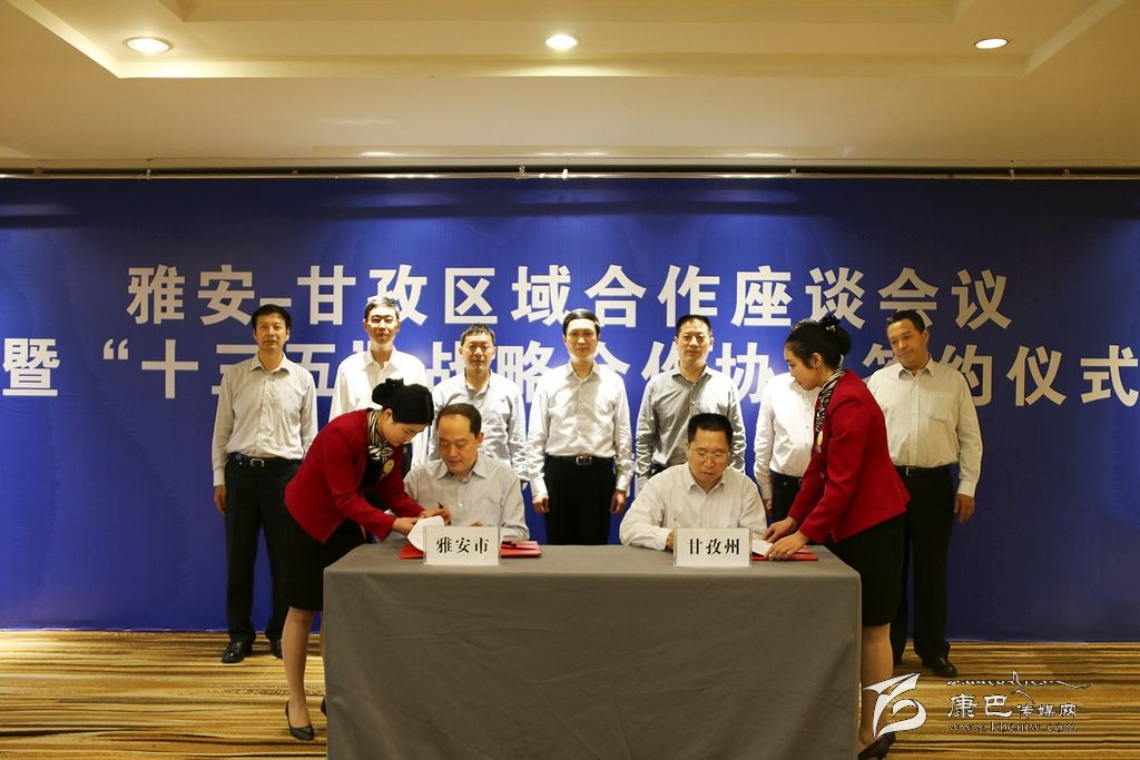省政府副省長、雅安市委書記葉壯出席儀式并作重要講話。州委書記劉成鳴,雅安市委副書記、市政府市長蘭開馳分別致辭。蘭開馳與州委常委、常務副州長陳忠義代表兩地共同簽署合作協(xié)議。雅安市委常委、市政府常務副市長黃劍東主持儀式。