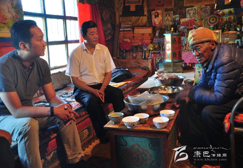 楊國(guó)元與色達(dá)縣打龍寺僧侶親切交談。