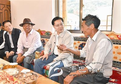 木雅村特色民居旅游紅紅火火、提吾村優(yōu)質(zhì)黑青稞種植面積不斷擴(kuò)大、羊廠村生態(tài)觀光農(nóng)業(yè)成為藏區(qū)增收新亮點(diǎn)、二朗村種養(yǎng)殖專業(yè)合作社帶動(dòng)越來越多貧困群眾增收……在各方面幫助支持下,藏區(qū)貧困村正在發(fā)生喜人變化。王東明逐村走進(jìn)村委會(huì)、脫貧攻堅(jiān)指揮室、衛(wèi)生室、農(nóng)家書屋、游客中心、便民超市、遠(yuǎn)程教育和文化活動(dòng)室,對照實(shí)現(xiàn)“兩不愁三保障”和“四個(gè)好”目標(biāo),現(xiàn)場檢查掛圖作戰(zhàn)實(shí)施進(jìn)展,認(rèn)真查閱建檔立卡、年度脫貧計(jì)劃和貧困群眾健康檔案等資料。他指出,藏區(qū)地廣人稀、資源優(yōu)勢明顯,要加強(qiáng)對資源稟賦、產(chǎn)業(yè)基礎(chǔ)、貧困現(xiàn)狀的普查,充分發(fā)揮省內(nèi)對口幫扶作用,大力引導(dǎo)內(nèi)地資本、城市資本進(jìn)藏區(qū),進(jìn)一步盤活特色資源。要結(jié)合深化農(nóng)村改革,培育或引進(jìn)更多新型經(jīng)營主體,大力發(fā)展青稞、松茸、牦牛等特色農(nóng)牧產(chǎn)品精深加工,著力打造品牌,強(qiáng)化與貧困群眾的利益聯(lián)結(jié)機(jī)制,帶動(dòng)貧困群眾增收脫貧。要發(fā)揮好村民活動(dòng)中心和農(nóng)家書屋作用,通過開辦農(nóng)民夜校等多種方式,廣泛宣講脫貧攻堅(jiān)政策和黨的民族宗教政策、法律知識,加強(qiáng)藏漢雙語教育和職業(yè)技術(shù)培訓(xùn),大力倡導(dǎo)現(xiàn)代文明新生活,既充分激發(fā)貧困群眾脫貧內(nèi)生動(dòng)力,又更好地促進(jìn)民族團(tuán)結(jié)進(jìn)步。