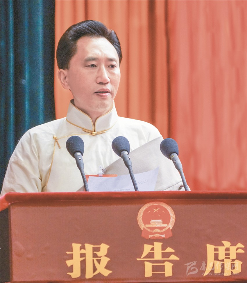 肖友才作政府工作報(bào)告。(本網(wǎng)記者 王明陽(yáng) 張兵 攝)