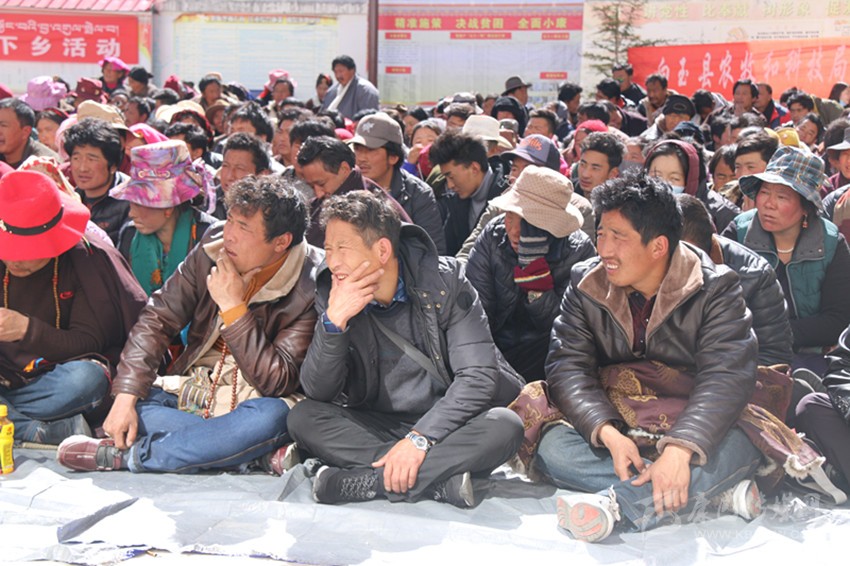 宣講中,宣講員們一會(huì)兒用藏語(yǔ)一會(huì)兒用漢語(yǔ),一會(huì)兒講故事一會(huì)兒舉例子,一會(huì)兒逗趣說(shuō)笑一會(huì)兒拍案而起,將省、州、縣的方針政策和國(guó)家法律、法規(guī)與當(dāng)?shù)厝罕姷膶?shí)際生活聯(lián)系起來(lái),講得生動(dòng)形象;“現(xiàn)在政策這么好,自己不努力,以后人家都脫貧了你就只有看到。”“勤洗手,勤洗澡,健康生活少不了。”“一個(gè)人長(zhǎng)得再漂亮,住的房子不干凈,穿的衣服不干凈,還有一身壞習(xí)慣,也沒(méi)得哪個(gè)喜歡她嘛?!薄瓬\顯通俗又包含道理的句子更是層出不窮。現(xiàn)場(chǎng)時(shí)而笑聲朗朗、掌聲雷動(dòng),時(shí)而氣氛肅穆、鴉雀無(wú)聲。臺(tái)上,講的是激情四射、手舞足蹈;臺(tái)下,聽(tīng)的是忘乎所以、目瞪口呆。長(zhǎng)達(dá)3個(gè)小時(shí)的宣講,現(xiàn)場(chǎng)秩序井然。