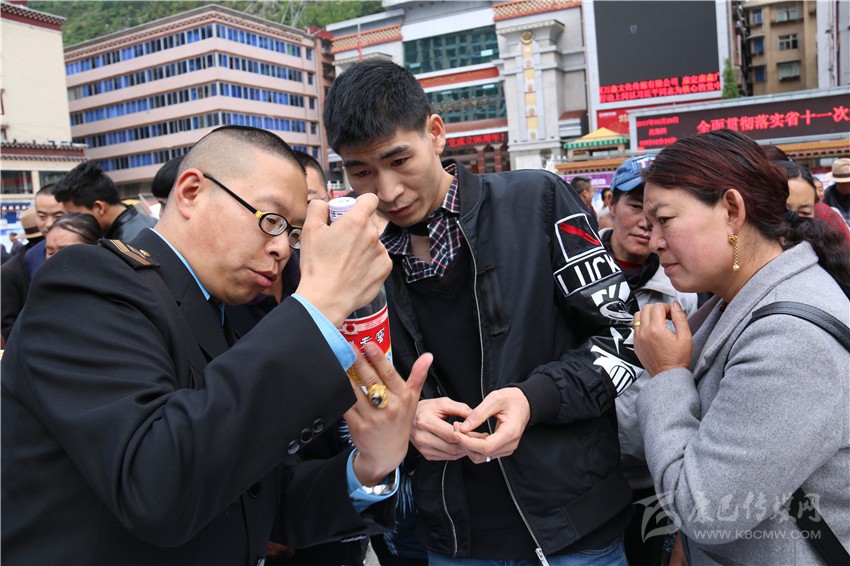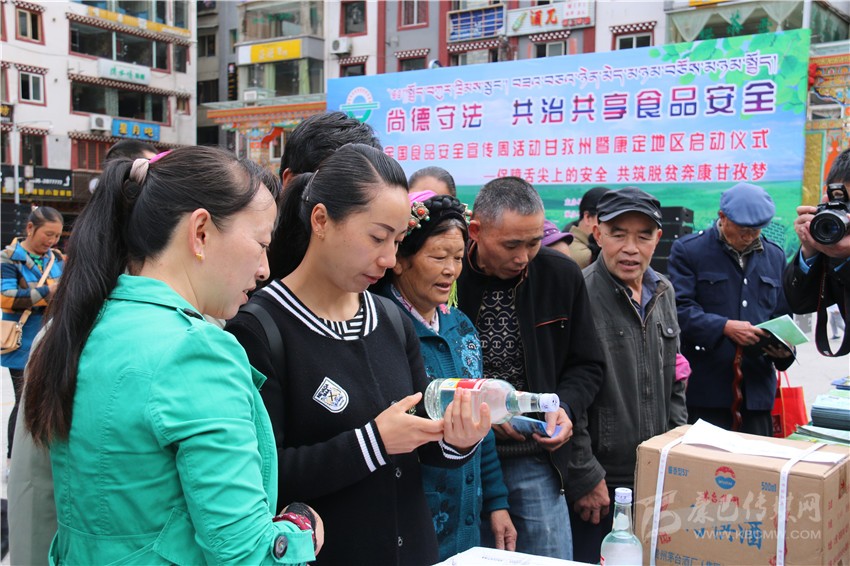 啟動儀式后,在康定情歌廣場上,來自州食安委和康定市食安相關成員單位通過現(xiàn)場咨詢、板塊展示、張貼海報標語、發(fā)放資料等方式,為前來關注食品安全的市民們發(fā)放和講解相關問題。在現(xiàn)場,記者看到廣大市民關注最多的是假冒偽劣食品,對于如何識別,現(xiàn)場工作人員都一一進行了耐心細致地講解。