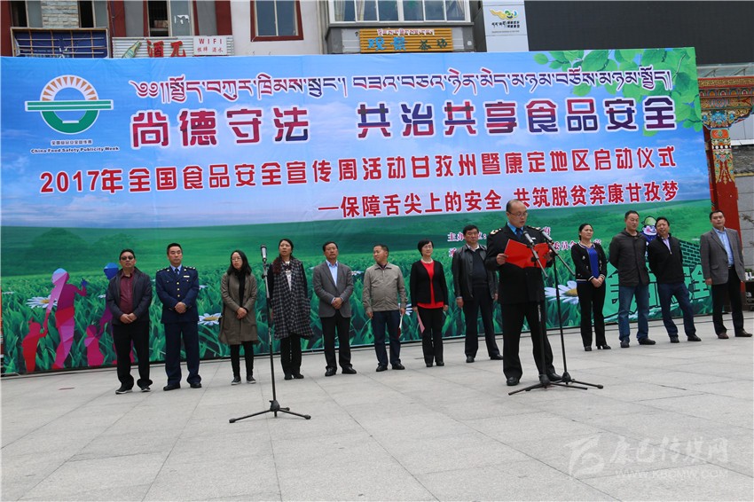 本網(wǎng)訊(記者 宋志勇 文/圖)6月29日,由州人民政府主辦的“2017年全國食品安全宣傳周活動”暨康定地區(qū)啟動儀式在康定舉行,目的是進一步普及安全法律法規(guī)和基本知識,提高公眾的食品安全意識和自我保護能力,進一步強化食品生產(chǎn)經(jīng)營者的法律意識、責任意識、誠信意識,進一步強化食品安全“政府負總責、監(jiān)管部門各司其責、食品生產(chǎn)經(jīng)營者是第一責任人”的責任,為構建食品安全長效機制營造良好的氛圍。
