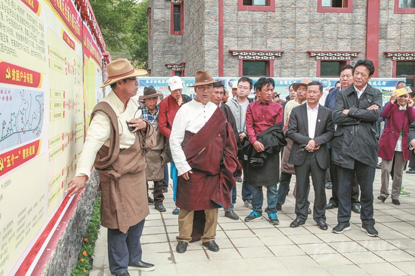 圖為與會(huì)人員在康定市瓦澤鄉(xiāng)魚子西三村參觀考察。