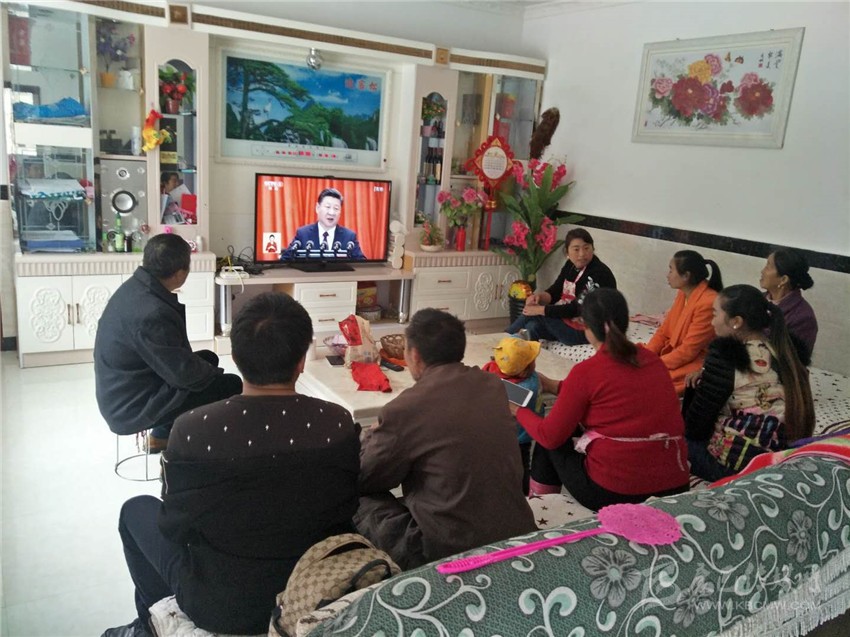 金剛村所有黨員和支部共建共創(chuàng)單位的干部職工,康定市群工局工作人員一同聚在了村支部書(shū)記毛芝榮家中收看黨的十九大開(kāi)幕會(huì)。