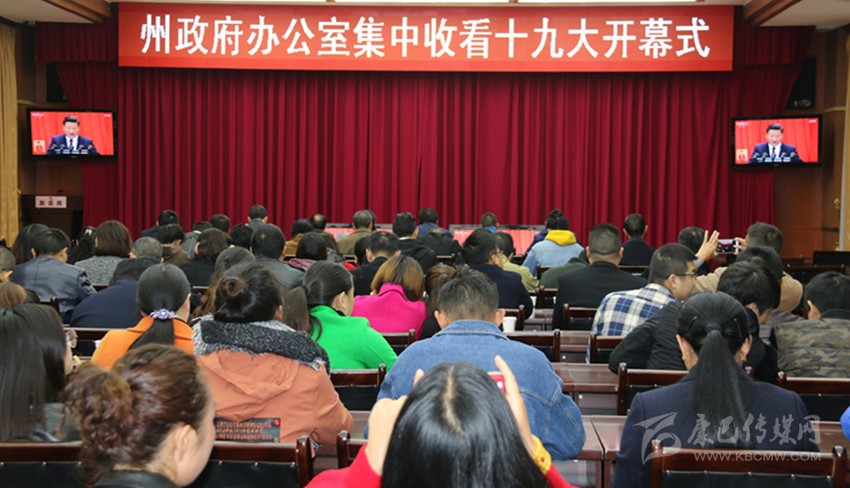 中國(guó)共產(chǎn)黨第十九次全國(guó)代表大會(huì)18日上午在人民大會(huì)堂開(kāi)幕。習(xí)近平代表第十八屆中央委員會(huì)向大會(huì)作了題為《決勝全面建成小康社會(huì) 奪取新時(shí)代中國(guó)特色社會(huì)主義偉大勝利》的報(bào)告?!安煌跣?,牢記使命,高舉中國(guó)特色社會(huì)主義偉大旗幟,決勝全面建成小康社會(huì),奪取新時(shí)代中國(guó)特色社會(huì)主義偉大勝利,為實(shí)現(xiàn)中華民族偉大復(fù)興的中國(guó)夢(mèng)不懈奮斗。”上午9時(shí),我州機(jī)關(guān)單位、學(xué)校、農(nóng)村牧區(qū)、企事業(yè)單位、駐軍等干部職工和農(nóng)牧民群眾圍坐在電視機(jī)旁,聚精會(huì)神聆聽(tīng)十九大報(bào)告,觸摸獲得感,說(shuō)說(shuō)心里話。藍(lán)圖催人奮進(jìn),成就鼓舞人心,全州各族人民表示,要在黨的堅(jiān)強(qiáng)領(lǐng)導(dǎo)下,擼起袖子加油干,與全國(guó)人民一道豪邁步入小康社會(huì)。