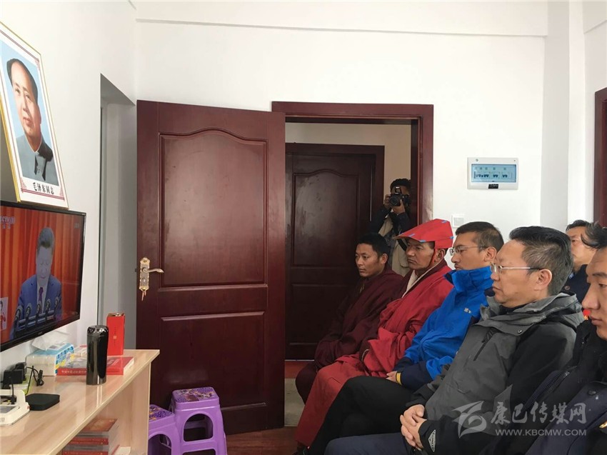 州財(cái)政局干部與聯(lián)系寺廟僧侶一同觀看十九大開(kāi)幕會(huì)。
