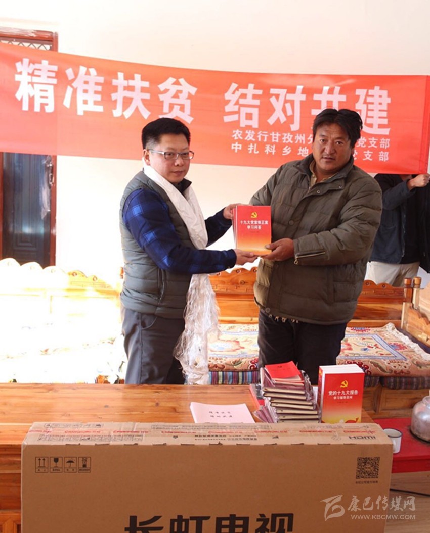 農(nóng)發(fā)行甘孜州分行向共建支部贈送十九大知識輔導(dǎo)讀本。