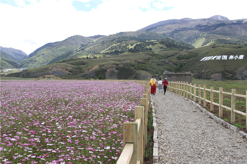 去年,在我州理塘縣濯桑鄉(xiāng)漢戈村, 當(dāng)?shù)貭?zhēng)取各方資金,利用旅游區(qū)位優(yōu)勢(shì)和老百姓群策群力,打造了占地800多畝、以波斯菊為主的漢戈花海,配套修建了賽馬場(chǎng)、游客中心、鍋莊廣場(chǎng)等。從去年國(guó)慶開(kāi)始,漢戈花村開(kāi)門(mén)迎客,鮮花留住了游客,也留住了收入。