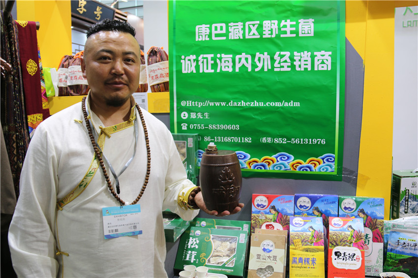 本網(wǎng)訊(記者 宋志勇 文/圖)“這是什么菌類,是野生的嗎?”“是的,是高原野生松茸,還有牦牛肉等,都是本地原生態(tài)綠色產(chǎn)品?!?月13日,參加第十四屆(深圳)文博會(huì)的康定市達(dá)折渚生態(tài)農(nóng)畜產(chǎn)品開(kāi)發(fā)有限公司負(fù)責(zé)人洛布,對(duì)前來(lái)我州展館購(gòu)買產(chǎn)品的市民和游客們肯定地說(shuō),圍在展臺(tái)的人們?cè)谄穱L到可口的牦牛肉產(chǎn)品的同時(shí),還詢問(wèn)包裝好的野生菌、青稞等系列產(chǎn)品。