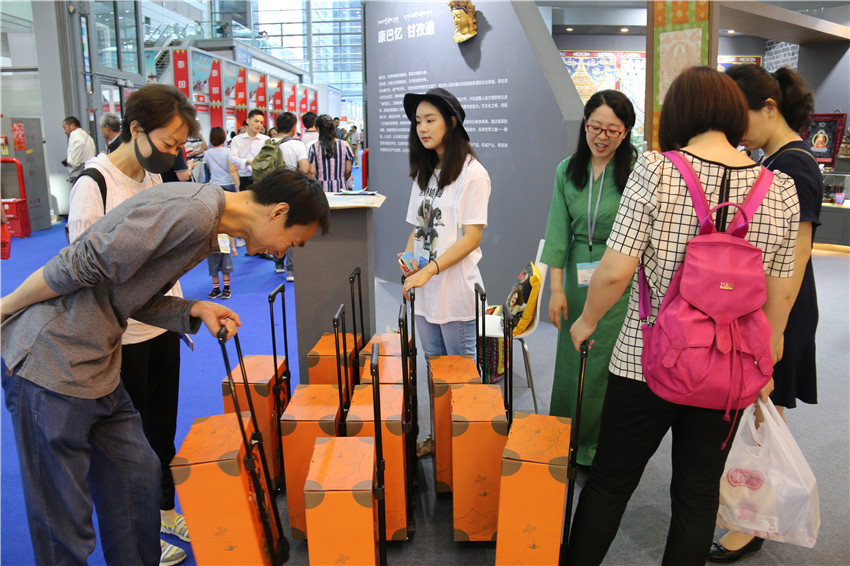 一個小小的紙質(zhì)拉桿箱,成為今年文博會爆款文創(chuàng)產(chǎn)品。為做好我州旅游“大IP”,讓全州的美景、旅游元素看得見、摸得著,甚至可以帶回家。在“藝?甘孜”的展館內(nèi),充滿甘孜元素的創(chuàng)意飾品、手繪扇子、文房書籍,甚至美容用品琳瑯滿目。