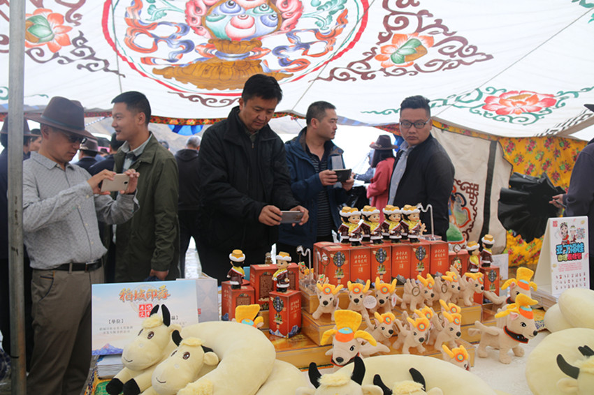 色拉鄉(xiāng)村旅游綜合體內展示的稻城文創(chuàng)產品引來眾多參會者圍觀。