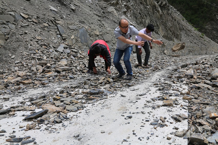 大約1小時后,500米長的鋼軌推送完成。施工人員又分組開展取輪軸、固定鋼軌等施工。多組施工人員流水作業(yè),將施工面向前推進(jìn)。16時30分,最后一組長鋼軌換鋪施工基本完成,川藏鐵路成雅段長鋼軌實(shí)現(xiàn)單線鋪通。