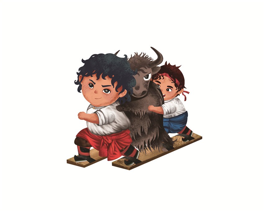 據(jù)悉,該卡通形象由康巴文化研究院設(shè)計(jì),最早出現(xiàn)在去年的環(huán)貢嘎山百公里越野挑戰(zhàn)賽上,在各國(guó)越野高手云集的賽場(chǎng)上,一名身著傳統(tǒng)服飾的小藏娃牽著牦牛奔跑的形象令人過(guò)目不忘。而此次省民運(yùn)會(huì)將繼續(xù)沿用“小藏娃和牦牛洛洛的形象”,康巴文化研究院組織專人設(shè)計(jì),按照既生動(dòng)可愛(ài)又準(zhǔn)確把握運(yùn)動(dòng)項(xiàng)目特征的要求,將此次運(yùn)動(dòng)會(huì)中的蹴球、陀螺、射弩、高腳競(jìng)速、板鞋競(jìng)速、押加、珍珠球、民族式摔跤等8個(gè)競(jìng)賽項(xiàng)目以卡通形象展現(xiàn)。