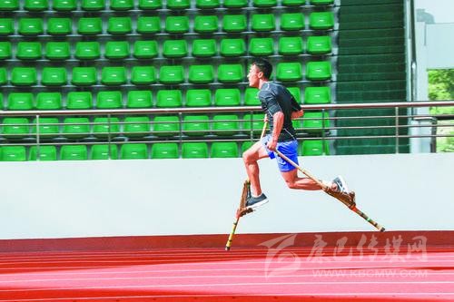 高腳競速運動是由運動員雙手各持一桿,同時腳踩桿上的腳踏蹬,在田徑場上奔跑,根據跑完同等距離用時多少定名次;其比賽形式分為單人賽、接力賽和混合接力賽,按賽程分有50米、100米、200米、400米和4×100米。