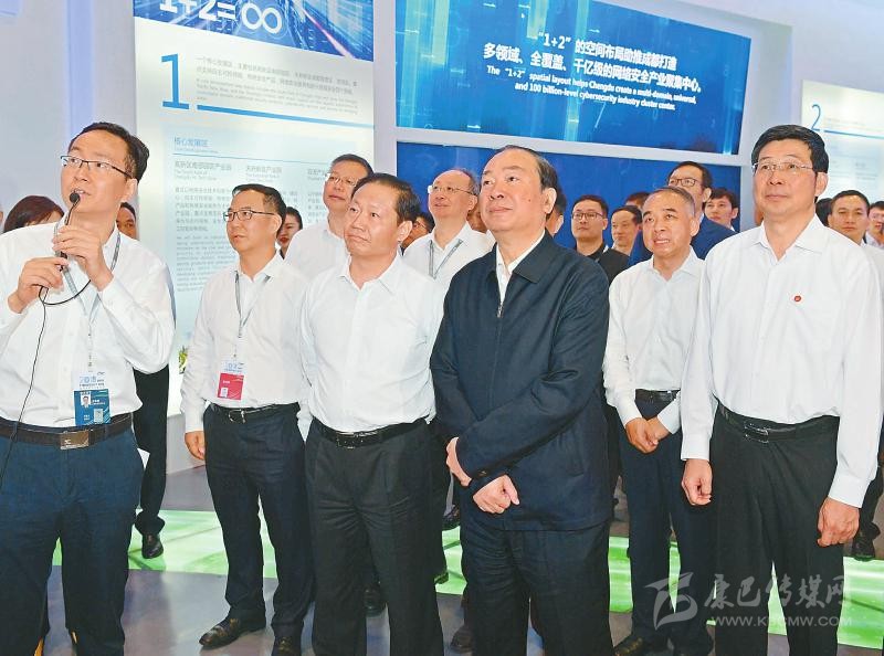 9月19日,中共中央政治局委員、中宣部部長黃坤明等參觀網(wǎng)絡(luò)安全博覽會。 川報(bào)記者 歐陽杰 攝