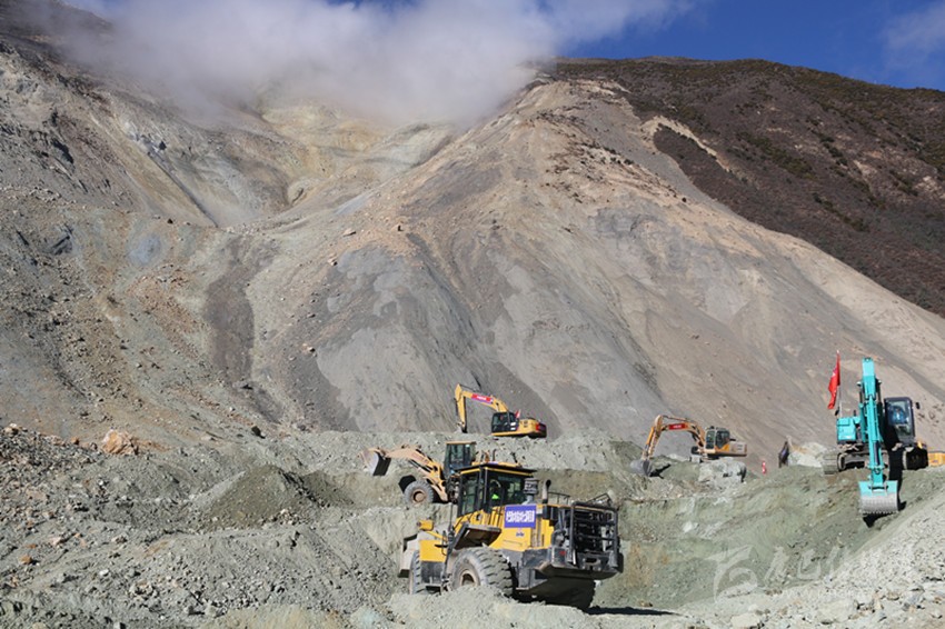 就在專家組緊急會商人工干預(yù)方案期間,從各地增援的大型機(jī)械已陸續(xù)抵達(dá)集結(jié)。11月5日下午3時左右,在下游葉巴灘水電站施工的水電五局的2臺挖掘機(jī)最先抵達(dá)白玉縣城,沒做停留又立即向則巴村方向前進(jìn)。