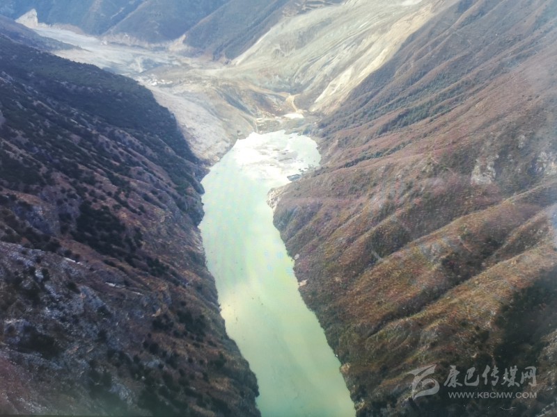 山體滑坡造成堆積很高的金沙江白格堰塞湖壩體