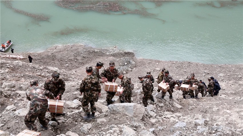 堰塞體最理想的觀測點在滑坡點對面——白玉縣絨蓋鄉(xiāng)的一座山坡上,那里地勢險峻、人跡罕至,只能從最近的則巴村徒步攀登15公里抵達??芰恳恍杏谏钜沟竭_則巴村,稍作休整,待次日天色初明,便開始急行挺進。一路山勢陡峭、荊棘密布,行進極為艱難驚險。4日9時過,寇量等人終于抵達預(yù)定觀測點位。9時30分,寇量利用手機將第一組堰塞湖圖像傳送到應(yīng)急管理部指揮中心。隨后,又用單兵圖傳設(shè)備實現(xiàn)了與北京的第一次視頻連線,徹底打破災(zāi)害核心區(qū)域的“信息孤島”狀態(tài)。