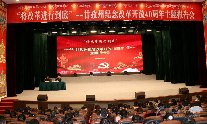 本網(wǎng)訊 昨(21)日上午,由州委宣傳部主辦的我州慶祝改革開放40周年“將改革進(jìn)行到底”主題報(bào)告會(huì)在康定劇場(chǎng)舉行。來(lái)自州委各部委、州政府各部門、省州屬行政企事業(yè)單位以及康定市機(jī)關(guān)干部職工代表共計(jì)500余人聆聽了報(bào)告。