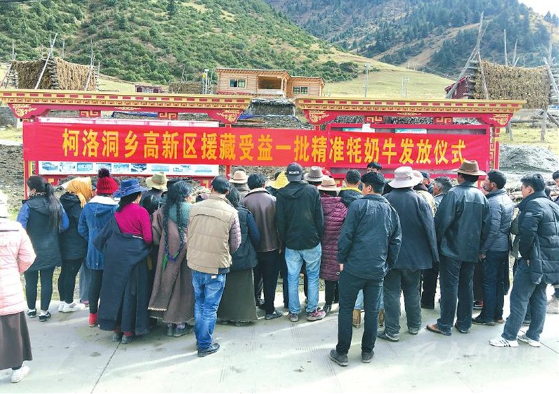 成都高新區(qū)對口支援甘孜州德格縣柯洛洞鄉(xiāng)扶貧牦奶牛發(fā)放現(xiàn)場。余定華 攝