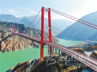 而在瀘定大渡河特大橋康定岸約200米處的公路堡坎上,寫(xiě)著毛澤東主席的《七律·長(zhǎng)征》一詩(shī)。一句“大渡橋橫鐵索寒”道出了大渡河的艱險(xiǎn),而如今,在這波濤洶涌的大河上,建起了如此雄偉的大橋,解決了出行難題,帶來(lái)了福祉,將促進(jìn)藏區(qū)經(jīng)濟(jì)社會(huì)發(fā)展,真是讓“高原人民盡開(kāi)顏”。
