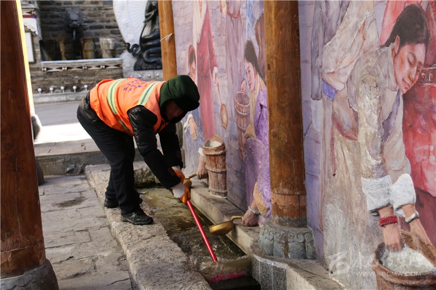 每逢節(jié)假日,是環(huán)衛(wèi)工人最忙最累的時(shí)候。2月5日下午,康定強(qiáng)盛公司清洗組組長(zhǎng)楊曉康帶著全組工作人員來(lái)到康定市水井子,打掃整個(gè)水井子的環(huán)境衛(wèi)生。“初一‘搶頭水’是多年來(lái)康定市民的過年習(xí)俗,我們現(xiàn)在把這里打掃干凈,讓市民們?cè)凇畵岊^水’時(shí)有干凈整潔的環(huán)境?!睏顣钥蹈嬖V記者。