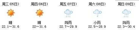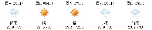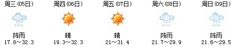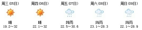 5日開始一直到9日都是多云到晴的天氣,日最高氣溫27℃左右。每天都有陣雨(小雨),考生出行應(yīng)防山地災(zāi)害。