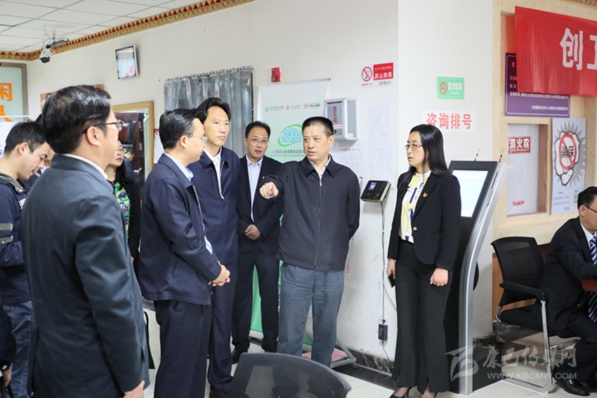 圖為劉成鳴、肖友才一行在州醫(yī)保局服務(wù)大廳調(diào)研。