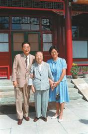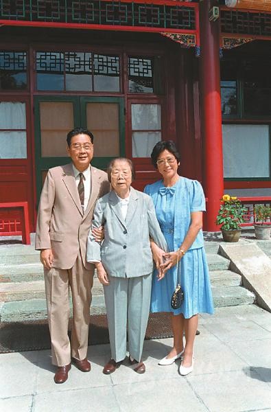 1986年,鄧穎超同志和李鵬同志及夫人朱琳在北京中南海西花廳合影。 新華社記者 王新慶 攝