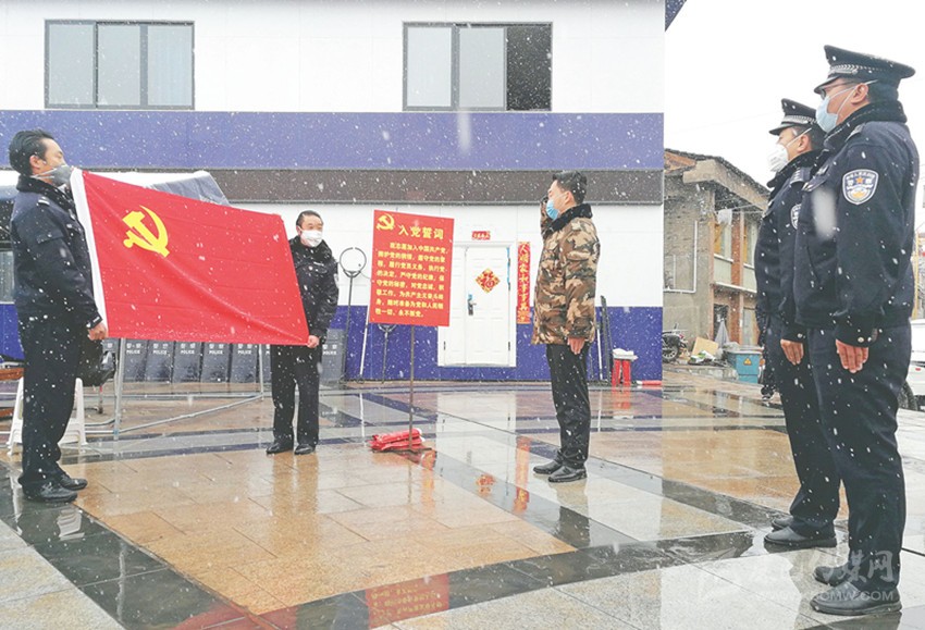 昨(18)日,道孚縣天空中下起了鵝毛大雪,在縣人民醫(yī)院、花園廣場防爆大隊執(zhí)勤點,舉行了兩場特殊而莊嚴的入黨宣誓儀式。來自道孚戰(zhàn)“疫”前線的2名警務人員和4名醫(yī)務人員,面向黨旗莊嚴宣誓,成為道孚縣抗”疫“前線第一批一線入黨黨員。