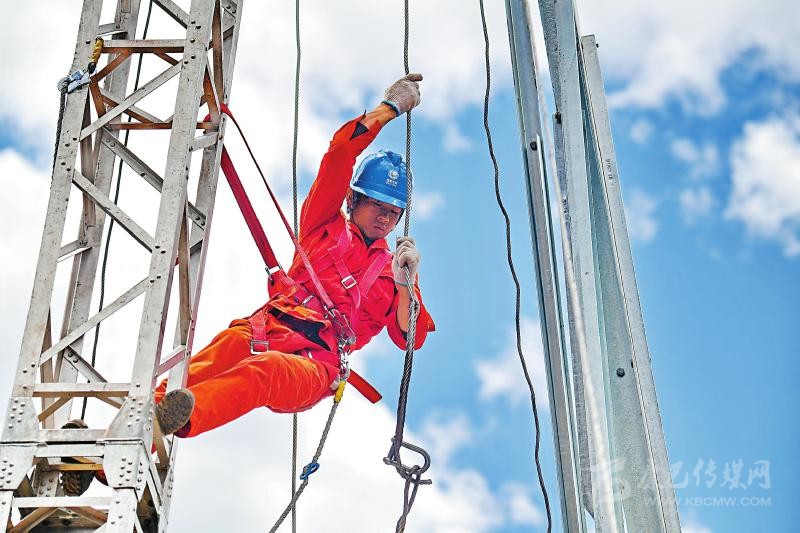 到達(dá)施工現(xiàn)場(chǎng),組塔工作也是十分艱難,鐵塔結(jié)冰,僅登塔時(shí)間便多出一倍,而作業(yè)時(shí)間每次不能超過半小時(shí),還要隨時(shí)面臨大風(fēng)、大雨、冰雹等天氣,導(dǎo)致工期推進(jìn)速度較平原地區(qū)慢一倍時(shí)間?!盀榱粟s在6月20日完成任務(wù),我連每天與女兒視頻的時(shí)間都省了,全力投入工作中?!表?xiàng)目部負(fù)責(zé)導(dǎo)線展放的電力工人楊彪說。