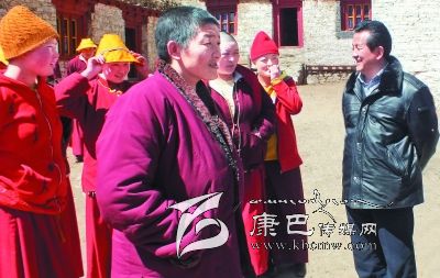在雅江縣委、縣人大常委會(huì)主要領(lǐng)導(dǎo)及統(tǒng)戰(zhàn)、宗教部門的陪同下,李康來(lái)到距縣城90多公里的雅江縣紅龍鄉(xiāng)158k覺(jué)姆寺,同寺管會(huì)成員和部分僧尼進(jìn)行座談。他詳細(xì)了解寺廟的基本情況,仔細(xì)詢問(wèn)僧尼的生產(chǎn)生活和寺廟佛事活動(dòng)開展情況,認(rèn)真傾聽僧尼的反映和訴求,對(duì)僧尼提出的困難和問(wèn)題詳細(xì)記錄,認(rèn)真答復(fù),耐心細(xì)致地講解宣傳黨的民族宗教和惠寺惠僧政策。座談會(huì)上,李康主任簡(jiǎn)短的開場(chǎng)白很快拉近了大家的距離,他說(shuō),這次專門到寺廟的目的就是看望大家,建立聯(lián)系,了解情況,收集問(wèn)題,希望大家暢所欲言,互相溝通,加強(qiáng)交流,增進(jìn)了解,共同推進(jìn)寺廟的健康有序發(fā)展。當(dāng)他了解到該寺的水、電問(wèn)題在縣委、政府的關(guān)心重視下,今年即將得到解決時(shí),他說(shuō),州、縣黨委、政府歷來(lái)十分關(guān)心寺廟的基礎(chǔ)設(shè)施建設(shè)和廣大僧尼的生產(chǎn)生活、健康醫(yī)療等問(wèn)題,寺廟的水電、道路、通信等基礎(chǔ)設(shè)施始終得到了黨委、政府的關(guān)心支持,僧尼的醫(yī)保、養(yǎng)老和最低生活保障等生活保障措施正在全州寺廟全面覆蓋。對(duì)寺廟的其他困難和問(wèn)題,州、縣將積極協(xié)調(diào),盡快解決。他強(qiáng)調(diào)指出,158k覺(jué)姆寺近年來(lái)通過(guò)縣委、政府綜合施策,強(qiáng)化教育,規(guī)范管理,寺廟整體情況良好,步入了依法管理的良性軌道。他講到,我們黨的民族宗教政策是長(zhǎng)期的、一貫的,寺廟作為基本社會(huì)單元,僧尼作為普通公民和基本群眾,要自覺(jué)接受當(dāng)?shù)攸h委、政府依法管理,維護(hù)祖國(guó)統(tǒng)一、民族團(tuán)結(jié)和法制尊嚴(yán),推動(dòng)宗教與社會(huì)主義社會(huì)相適應(yīng),與現(xiàn)代文明進(jìn)程相協(xié)調(diào),積極投入全州發(fā)展中來(lái),共同建設(shè)好我們的和諧幸福家園。任何寺廟只要服從當(dāng)?shù)攸h委、政府的管理,認(rèn)真貫徹落實(shí)好藏傳佛教的各項(xiàng)管理規(guī)定,真正發(fā)揮好宗教的正面積極作用,寺廟才會(huì)得到黨委、政府更多的關(guān)心支持,才會(huì)得到更好的健康發(fā)展。他希望158k覺(jué)姆寺要依法加強(qiáng)宗教事務(wù)的管理,深入貫徹落實(shí)《甘孜州藏傳佛教事務(wù)條例實(shí)施細(xì)則》,促進(jìn)依法治寺、規(guī)范管寺,為維護(hù)正常宗教秩序、服務(wù)經(jīng)濟(jì)社會(huì)發(fā)展、促進(jìn)社會(huì)和諧穩(wěn)定做出積極貢獻(xiàn)。